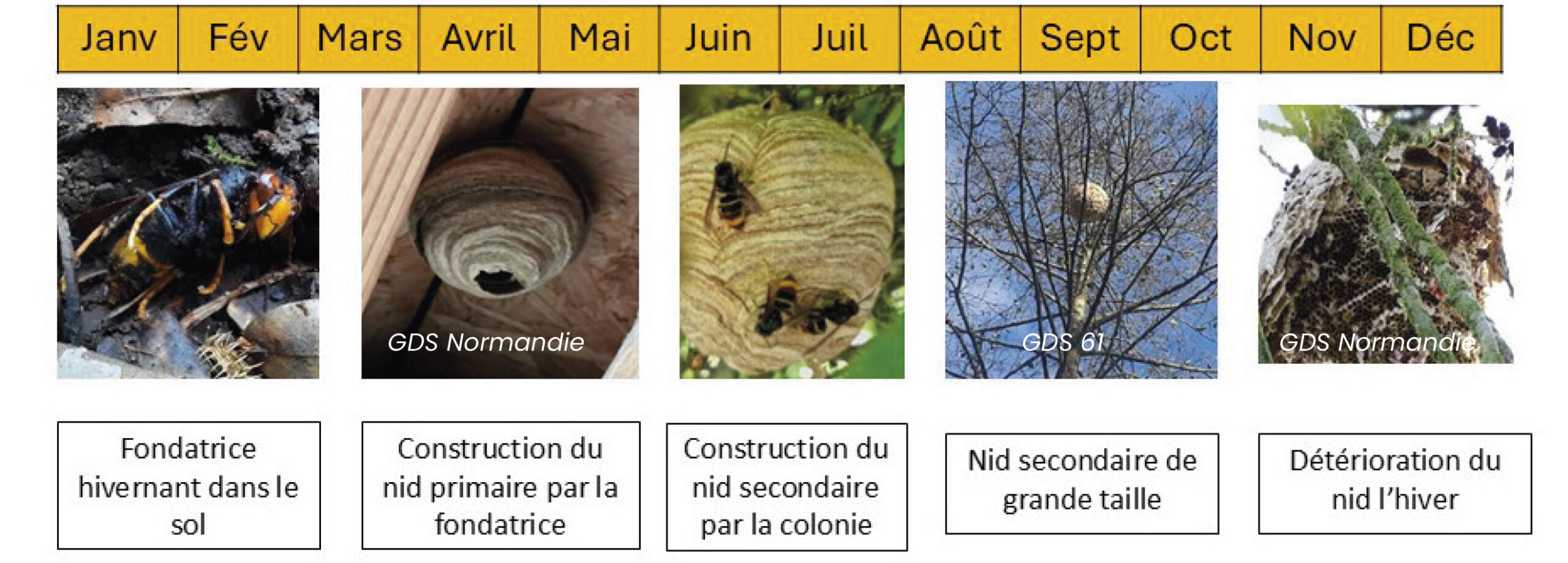 Deux nids dans le cycle du frelon.