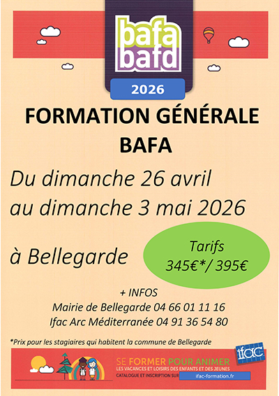 • du dimanche 26 avril au dimanche 3 mai 2026 : une formation générale, première étape du cursus BAFA.