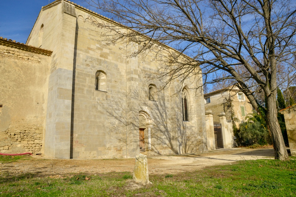 Construite à la première moitié du XI ème siècle, elle est dédiée à Saint-Vincent (devenu par la suite St patron des Vignerons). Elle relève d’abord de Saint-Gilles puis du Chapitre de Nîmes. Le culte y sera effectué (à titre privé) jusqu’en 1926. De style roman, la chapelle constitue un édifice remarquable par son état de conservation. Elle est classée Monument Historique depuis 1984 et demeure l’une des chapelles romanes les mieux conservées de l’hexagone.