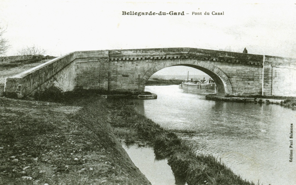 Prolongement logique du canal du Midi conçu par Pierre Paul Riquet et réalisé pour la navigation, le canal de navigation « du Rhône à Sète » ou de « Beaucaire à Aigues-Mortes » est indissociable du projet d’assèchement des marais de Beaucaire, Bellegarde, Fourques et Saint-Gilles. C’est en 1599 que le projet est envisagé pour la première fois. Mais il faudra attendre finalement le 3 décembre 1805 pour que le canal soit déclaré officiellement ouvert. L’ingénieur Paulin Talabot, en 1834, améliorera l’efficacité du canal en réalisant prés d’Aigues-Mortes un système d’écluse qui résoudra le problème de remontées des eaux de mer dans le canal. Cent ans plus tard, le chemin de fer et les routes entreront en concurrence avec le canal. Mais c’est la construction du barrage de Vallabrègues en 1969 qui lui donne le coup de grâce avec la fermeture de l’écluse de Beaucaire. La liaison avec le Rhône est coupée, un raccordement entre le petit Rhône et le canal sera créé en 1973, à hauteur de Saint-Gilles, classant ainsi en impasse la partie Bellegarde-Beaucaire. Aujourd’hui, la perspective de reconnecter au Rhône, le canal au niveau de Beaucaire a été maintes fois abordée mais pour l’instant pas concrétisée…