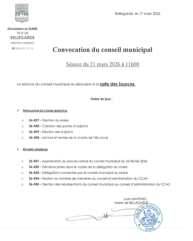 Le nouveau conseil municipal élu, se réunira samedi 21 mars salle des Sources à 11h pour procéder à l’élection du maire et des adjoints..