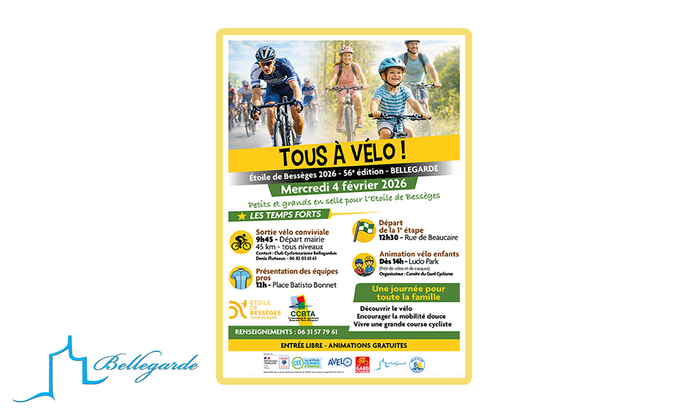 - 9h45 rendez-vous au départ de la mairie, pour une sortie vélo conviviale de 45 km Pour tous niveaux. Proposée par le Cyclotourisme Club Bellegardais. Contact Denis Fluteaux 06 82 03 61 61